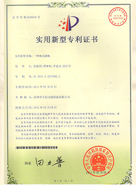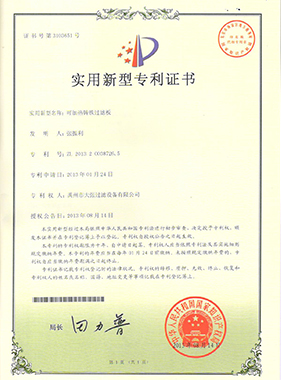 | ZL 2013 20186331.X | 聚丙烯棉饼滤板 | 实用新型 |