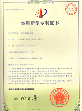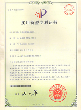 | ZL 2012 20115915.3 | 自动皮带输送压滤机 | 实用新型 |