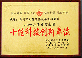 | 河南省十佳科技创新单位 | 河南省科学技术厅 | 2012年 |