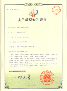 | ZL 2013 2 0186734.4 | 刷辊自动冲洗滤布装置 | 实用新型 |