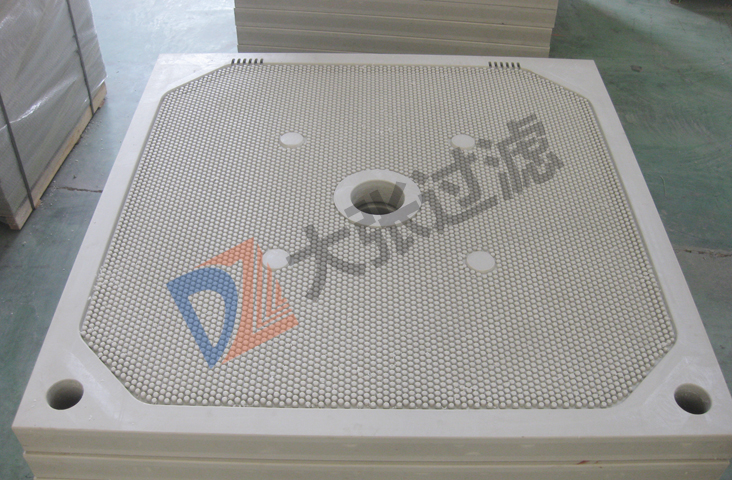隔膜滤板分为橡胶隔膜滤板和聚丙烯隔膜滤板。橡胶隔膜滤板膜片一般嵌在芯板的沟槽内,便于拆卸和更换,因为橡胶膜片具有很高的弹性,因而不容易损坏。聚丙烯滤板膜片一般采用整体式焊接而成,采用焊接而成的膜片不可更换。