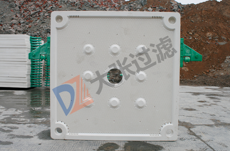 在输料泵的压力作用下, 将需要过滤的物料液体送进各滤室,通过过滤介质(根据不同行业选择合适的滤布),将固体和液体分离。在滤布上形成滤渣,直至充满滤室形成滤饼。滤液穿过滤布并沿滤板沟槽流至下方出液孔通道,集中排出。过滤完毕,可通入清洗涤水洗涤滤渣。洗涤后,有时还通入压缩空气,除去剩余的洗涤液。过滤结束后打开压滤机卸除滤饼(滤饼储存在于相邻两个滤板间),清洗滤布,重新压紧板滤开始下一工作循环。