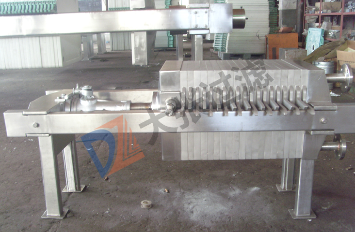 产品优势(特点):1、 比一般的不锈钢板框过滤设备滤室容积大、耐受压力高、耐受温度高 2、 可制作更大尺寸的滤板 3、 一般采用液压压紧,不加密封圈,可以特氟龙喷涂