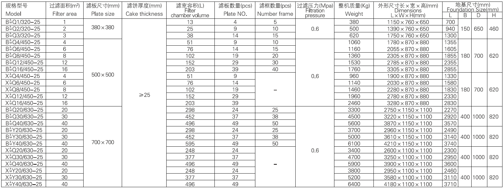 铸铁压滤机技术参数