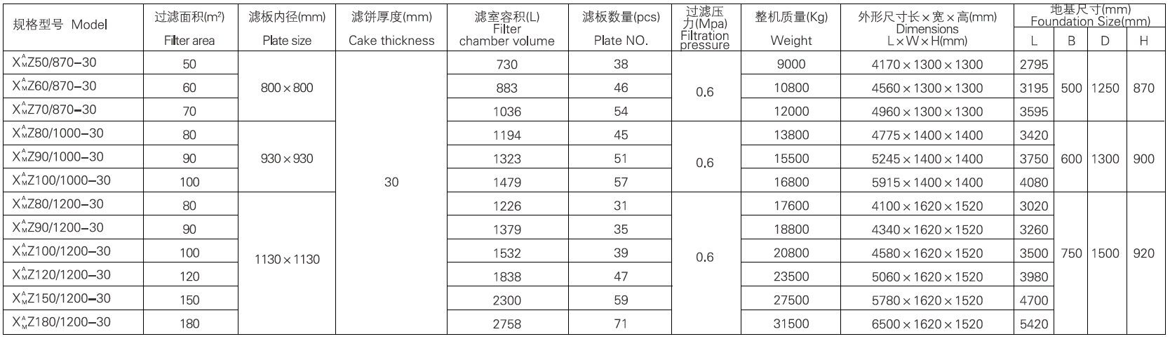 全自动铸铁压滤机技术参数
