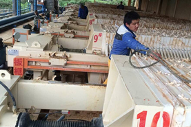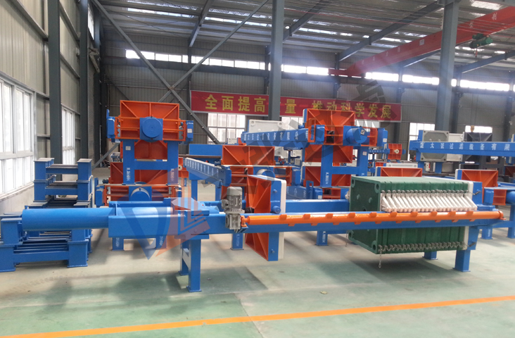 产品优势(特点):1、 一次拉开厢式压滤机最大的优势是拉板速度快、自动辅助卸料 2、 结构紧凑、节省人工,自动化程度高。 3、 配合自动振打装置,对等距离拉开的滤板实现震动辅助卸料功能,可实现全自动卸料。